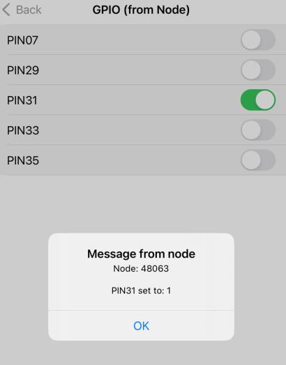 Five of the Raspberry Pi GPIO pins are wired out to the ClearRPT‘s DSUB 15 connector. You can control them in real time from the ClearNode mobile app – at the bottom of the Node Details screen tap on “GPIO Control”.